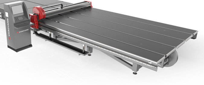 Автоматические стеклянные мачинайс вырезывания для того чтобы транспортировать граненое стекло лентой транспортера к ворктабле, автоматически иньпут положение стекла через систему светоэлектрической сканирования, и после этого приставной резак с колесом диаманта на движениях держателя резца вдоль направлений кс и ы соответственно управлением программы, отрезал лист. Регулятор движения КНК использован в контрольной части машины, и выдвинутый мотор сервопривода АК использован в части привода.