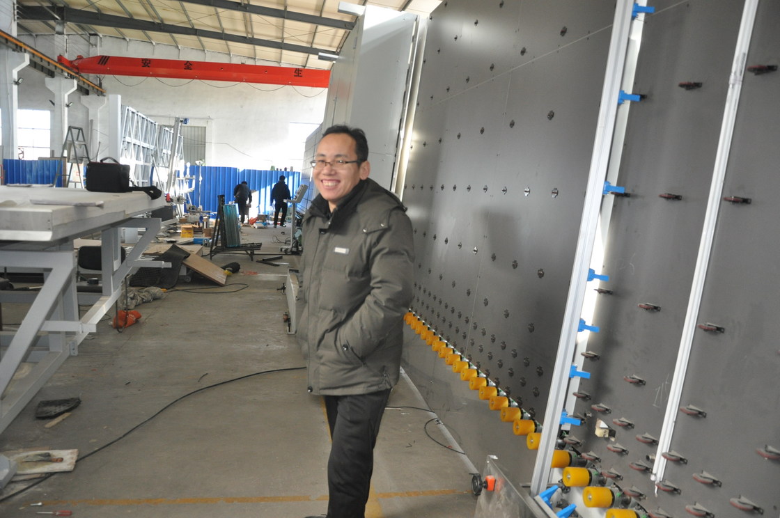 *Инсулатинг машина стекла отжимая одновременного пояса: одновременный луч пояса двинет согласно стеклянной ширине рамки толщины и алюминия для обеспечения что отверстие инфляции между первой и второй стеклянной алюминиевой рамкой для того чтобы надуть зазор (значение приходит от клапанной тяги ДК и электронного правителя)