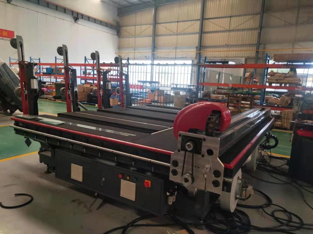 Общий план проекта: Линия вырезывания CNC автоматическая стеклянная составлена автоматической нагружая таблицы, автоматического разделочного стола и воздушно-уплыта ломая таблицу. Автоматическая стеклянная линия вырезывания главным образом использована в обработке плоского стекла, которое смогите быстро и точно нагрузить листы, для того чтобы отрезать прямолинейное, в форме особенн стекло и воздушно-уплытые механические ломая листы. Производственный поток следующим образом: Таблица загрузки использует механическую оборачиваемость, через чашку всасывания вакуума принимая листовое стекл от шкафа, положенного вниз к нагружая таблице. Стекло транспортировано к разделочному столу через ролик на нагружая таблице и конвейерной ленте на разделочном столе. Держатель резца на режа луче автомата для резки управляет резцом для того чтобы двинуть на высокой скорости в x направление и направление y мотором сервопривода. Используя вращение мотора Z-оси для того чтобы контролировать траекторию тангенса инструмента. В то же время, давление резца и глубина резца проконтролированы моделирующей физической величиной, и 4 оси управляются одновременно для того чтобы отрезать. Когда вырезывание закончено, листовое стекл отправлено в воздушно-уплытую ломая таблицу для выходить сквозь отверстие воздушная подушка сформированная конвейерной лентой и ломая таблицей.