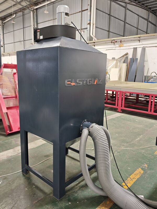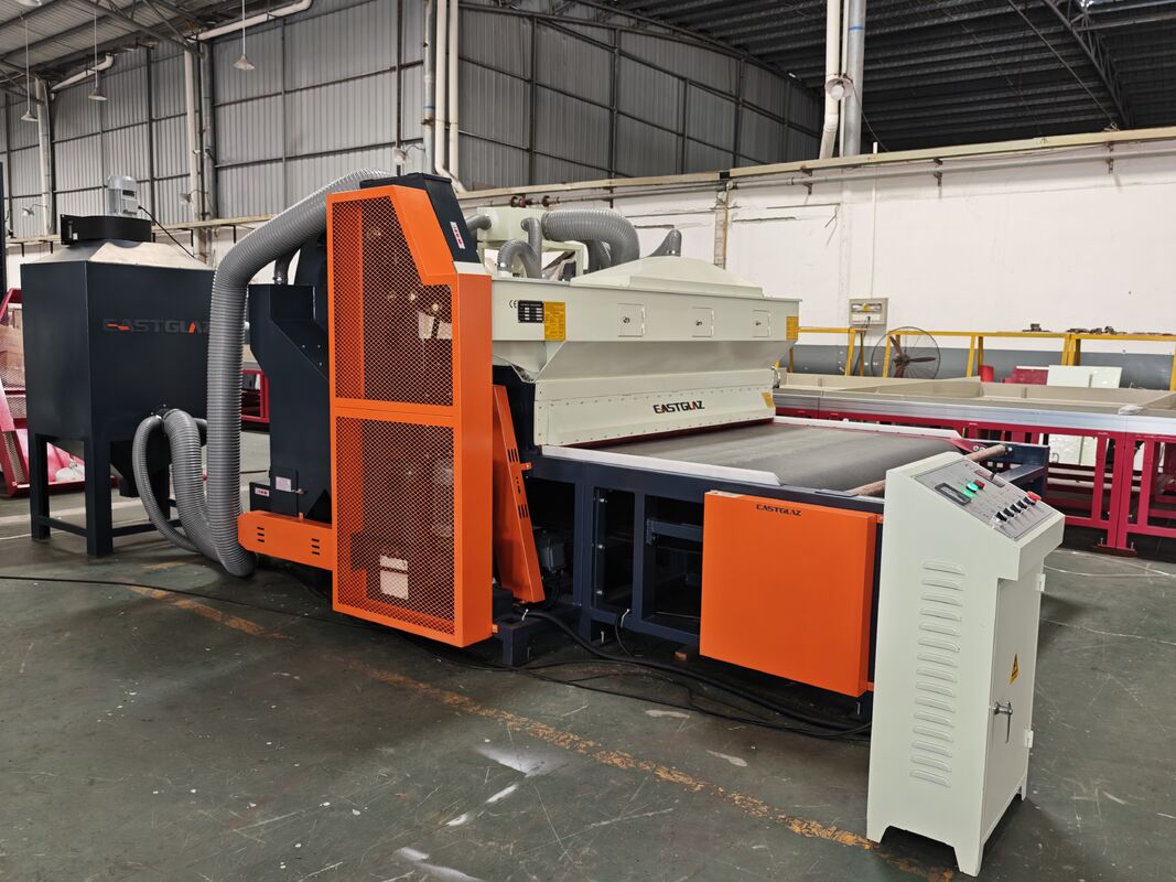 Full-automatic glass sandblasting machine contains of dust collecting--sand sweeping--transportation--grit feeding--sandblasting--sound attenuation--grit filtration--grit equalization--grit storage--shakeout. Каждый участок производственного процесса завершается автоматически. Улучшенная рабочая среда и сниженная интенсивность труда. Из-за значительного снижения затрат на производство,машина была принята и выбрана большинством клиентовЭта машина подходит для шлифования поверхности стекла, акрила, камня, керамики, металла и других материалов.